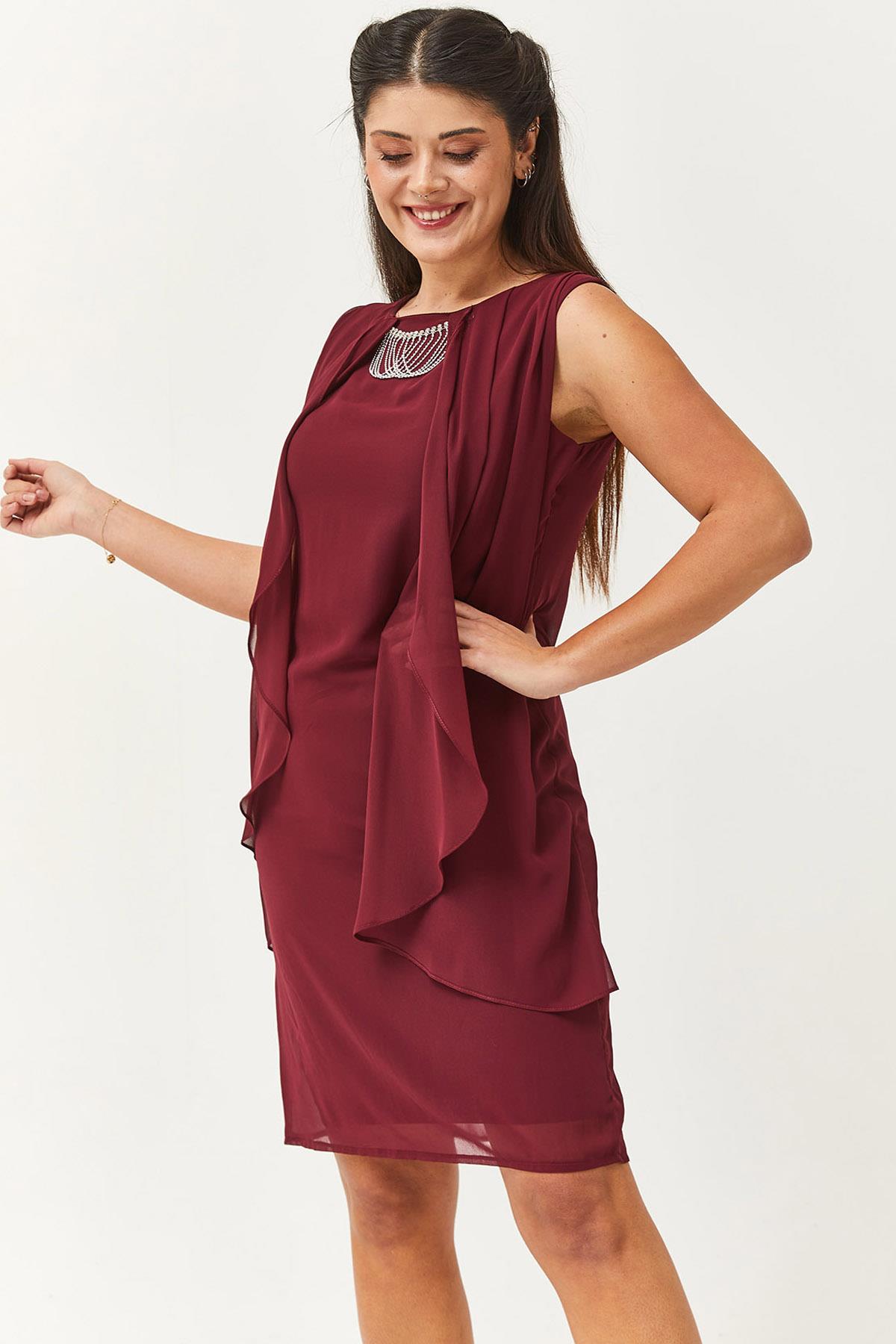 Kadın Büyük Beden Yaka Aksesuarlı Kolsuz Abiye & Davet Elbisesi